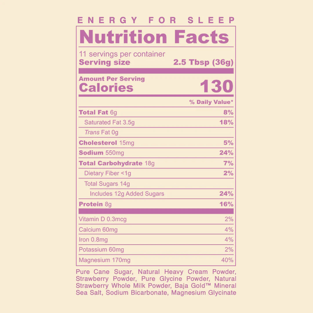 Handmade in the U.S., SPORT DREAM uses real sugar, real heavy cream powder, clean salt, magnesium glycinate, glycine, sodium bicarbonate, and freeze-dried fruit or cocoa powder — depending on flavor. That’s it.